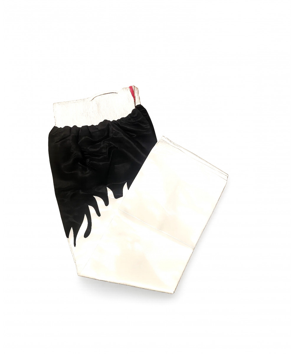 Pantalon de Boxe Full SDI – Blanc/Flammes Noires – Taille M