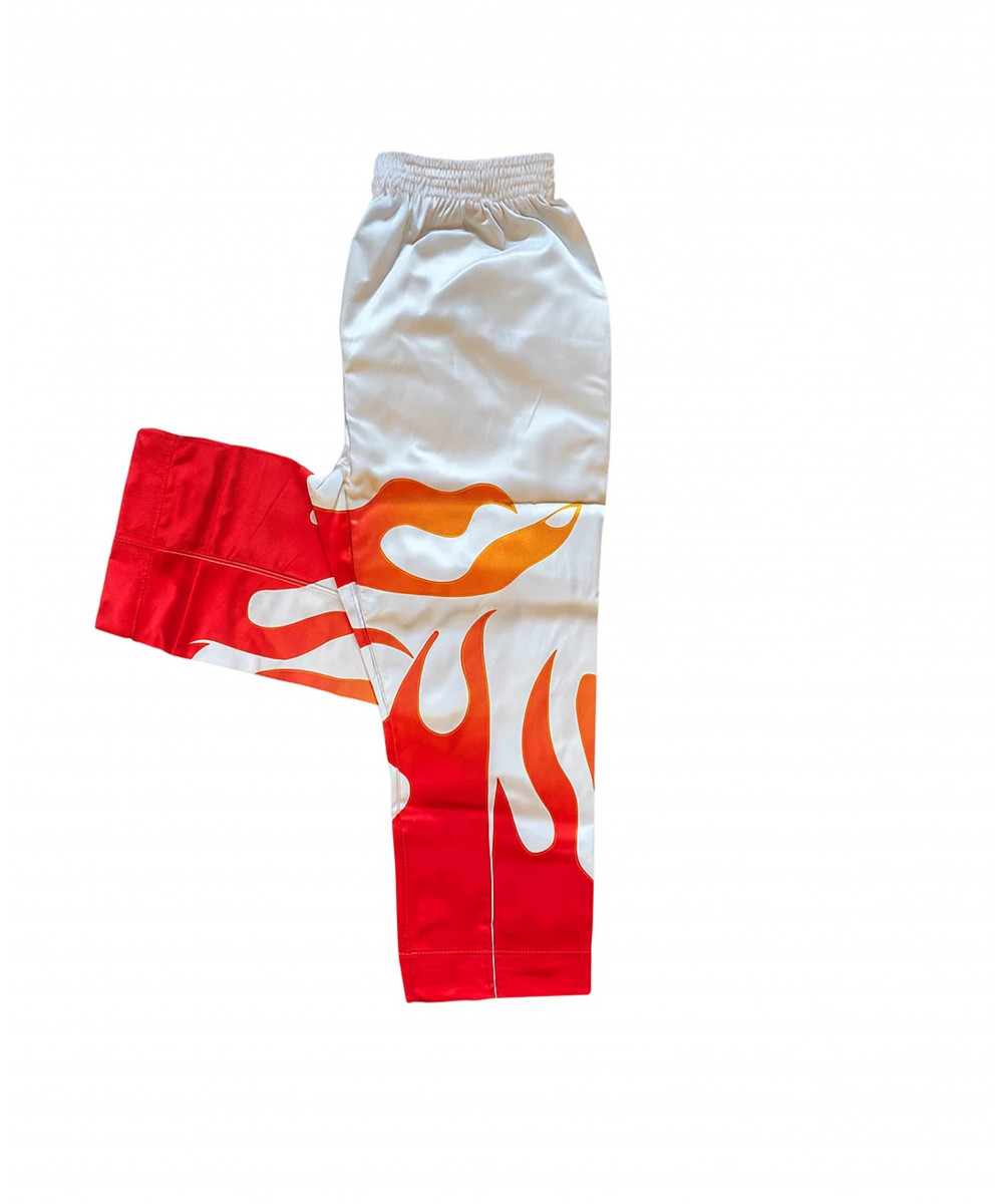 Pantalon de Boxe Full SDI – Blanc/Flammes Rouges – Taille XL