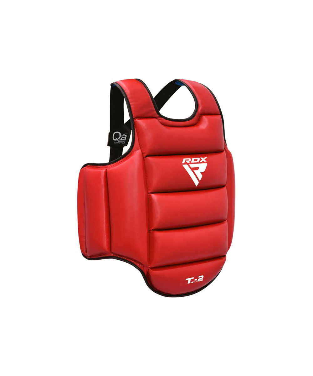 Réunissant l'innovation et la tradition. Le dernier protège-poitrine de taekwondo double face de RDX est conçu pour intégrer l'absorbance de choc de haute technologie du monde moderne dans l'art martial classique de kick TKD classiquement puissant. Le cuir de peau maya est breveté et scientifiquement efficace pour combattre l'usure. Le rembourrage stratifié super comprimé avec de la mousse provoque un protecteur de protection de coffre agile, durable et durable qui est incassable et résiste à tout ce que vous lui lancer. (Double face). CE CERTIFIÉ PAR SATRA TECHNOLOGY