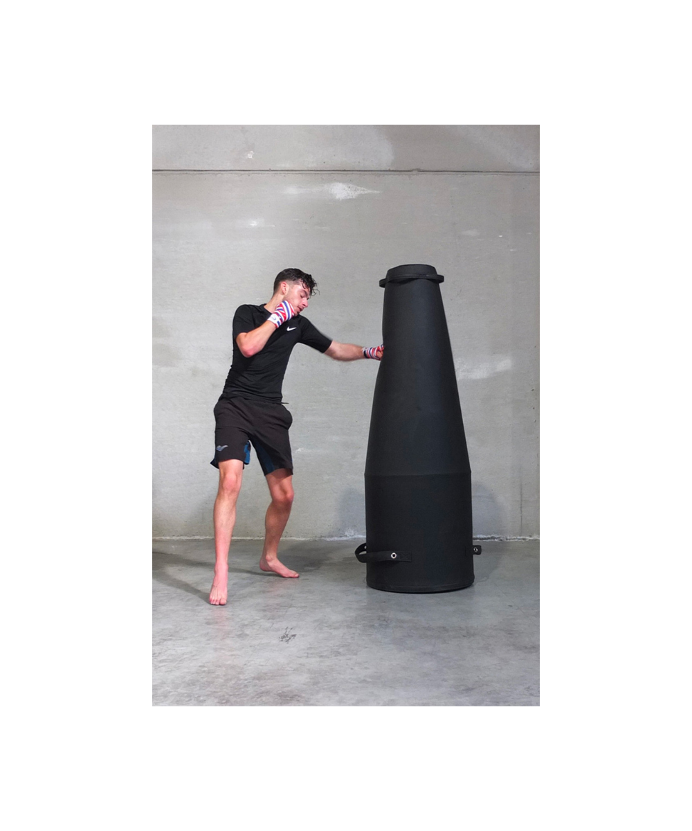 La structure du YA’FI est entièrement en mousse pour une surface de frappe d’1,75 m de haut utilisable à 100 %. Une mousse pulsée à haute densité qui permet d’amortir les coups en douceur tout en procurant une sensation de frappe réelle. La mousse est recouverte d’une housse en vegan très résistante et facile à nettoyer. Y sont disposées 4 poignées et 2 sangles avec oeillets qui permettent de varier les exercices et d’accessoiriser le YA’Fi.